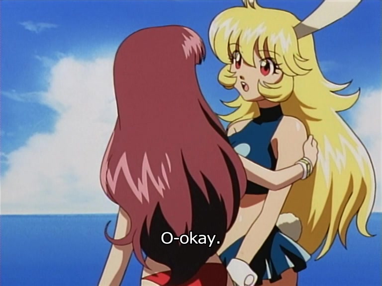 Mikami Inaba was fighting a person from another school on her school's rooftop. As they fought, her friend Haru appeared. Seeing Mikami distracted, the man charged at her, causing both of them to break the nearby rabbit cages & fall off the roof. As Mikami fell, she desperately grabbed the rabbit. Suddenly, a flash or pink light appeared. Mikami fused with the rabbit, and gained another personality, called Mimika. Now, Mikami only appears when various people threaten her and her friends. Otherwise, she takes on the form of Mimika.