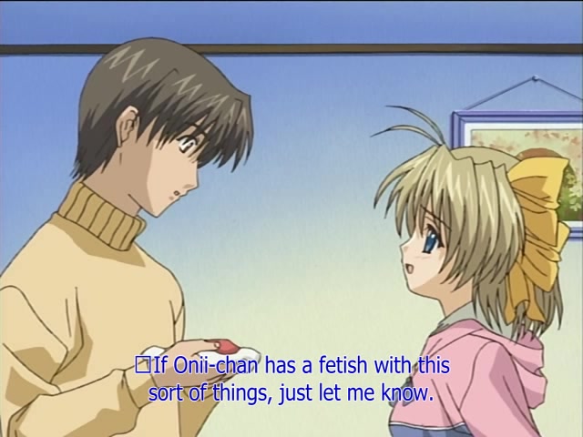 The first episode covers Yuki's story, Kenji's younger sister, whose obsession with her brother makes her sad. This is especially considering they're brother and sister, despite being fact that Yuki was adopted by Kenji's father. The second episode goes through clumsy Hiyori's story, where she appears out of Kenji's dresser - naked and ghost-like, trying to convince Kenji to fall in love with her, even though Hiyori does not remember why she appears out of dresser.