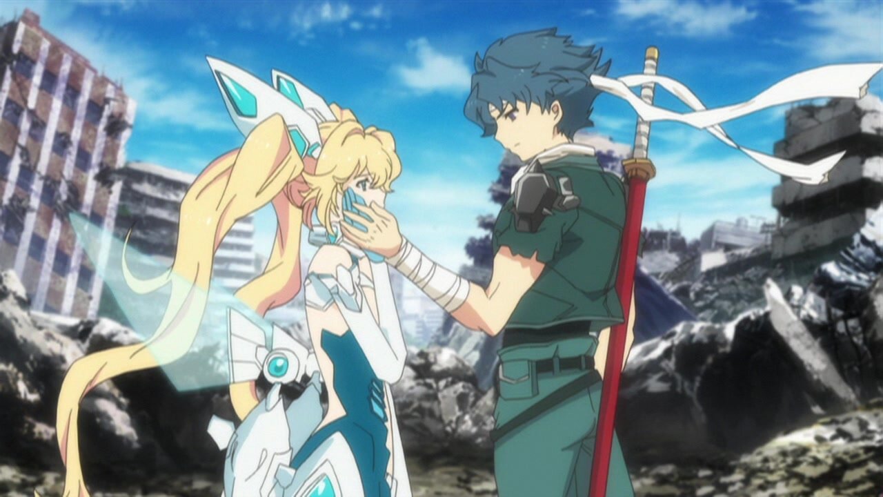 In the late 21st century, humankind came under a fierce attack from aliens who suddenly appeared via wormholes. They were helpless to fight against them and resigned themselves to imminent death. At that time, an ultimate weapon which could create items out of imagination was discovered in a expansive cave under Japan, along with its young master Ryuusei who was in cryostasis. The indiscriminate alien attacks awoke him and he led the humans to a decisive victory. One year later, while the areas which had been destroyed by the aliens were still being rebuilt, Ryuusei was appointed as the commander of the newly-formed Defence Force of Earth, which was created to fight against space invaders. However, he was the only person who could use the ‘imagination embodiment device’. If something was to happen to him, then calamity would befall the world. So the Defence Force of Earth decided to recruit girls with potential to fight alongside him. Even though they hesitated at first, they each had their own reasons to join Ryuusei. Thus, the special force ‘Blade Briders’ was formed, to protect the Earth against the aliens who have returned.
