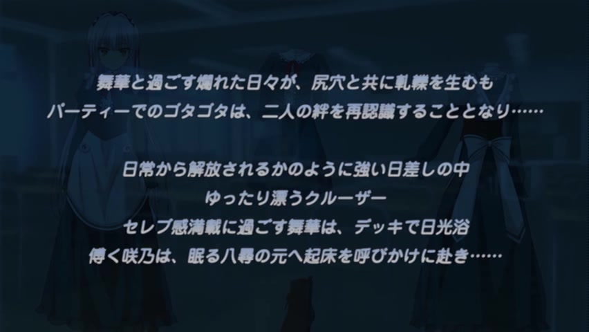 久々の休みを利用して、クルーズにでる舞華と八尋と咲乃。 日光浴に勤しむ舞華に、昼寝の八尋を起こすためにと船舶の中に戻る咲乃。 昼寝の八尋に近づき起こそうとすると…… 「や、八尋様、わたくしはっ……」 寝ぼける八尋は、舞華と間違え抱きしめてしまう咲乃。 戸惑う咲乃であったが……その瞳は妖しげに濡れて…… 「八尋様……私で感じてください……」 ズボンをズリ下げ、ビキビキに硬くそそり立つ肉棒を豊満な乳房に挟み、ねっとりと扱き上げていく咲乃。 八尋との恥戯に耽りながら、時間だけが過ぎていった…… 戻るのが遅いと日光浴から戻ってくる舞華は、部屋のドアの前で呆然と立ち尽くしていた…… ドアの窓から覗くのは、激しく腰を打ち付ける咲乃と八尋であった…… 「お、おい、何してんのッ、咲乃、八尋ッ」 激しく扉を打ち付ける舞華。 しかし、その前で気付かぬように、だらしない顔で悦ぶ咲乃の姿に何も出来ない舞華であった……
