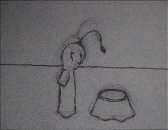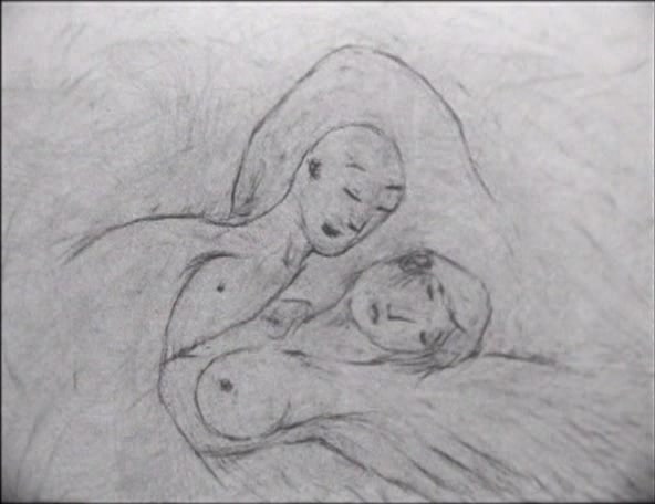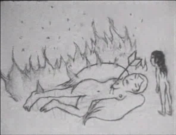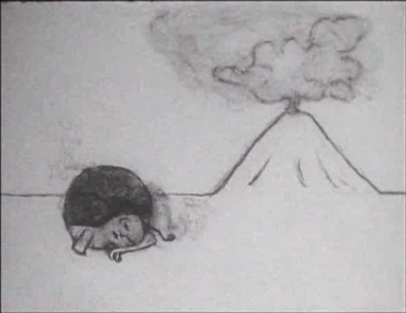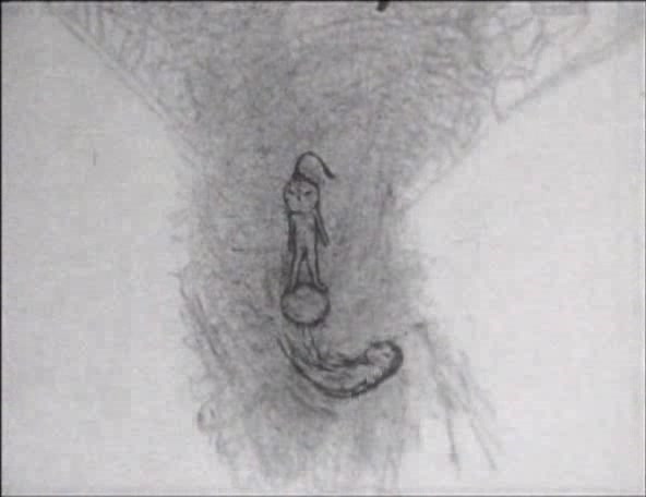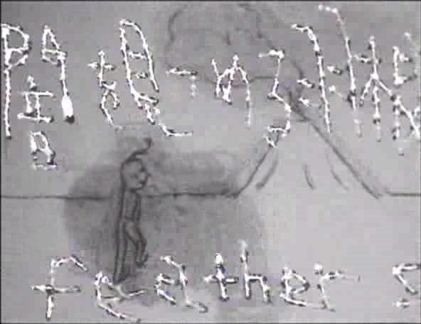 A story set in a world before ours. A world in chaos where forces of good and evil fight and mingle. By doing so, it creates the chance to give birth to the new world. A couple of winged beings make love and fly away. They bear a child in an egg, and when the child opens its eyes they are immediately destroyed, one consumed by fire and the other by water. Mythical, elemental and mysterious, the world created by Tsuji is dangerous, menacing and suffuse with signs of apocalypse, but somehow simultaneously tender and compassionate. A Feather Stare at the Dark captures simple gestures and primal feelings and amplifies them, realising the non-verbal and non-literal with remarkable grace.