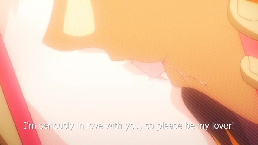 Hanao, who has a passion for Nishida, grabs her shoulder and kisses her forcibly when she rushes to her reply.