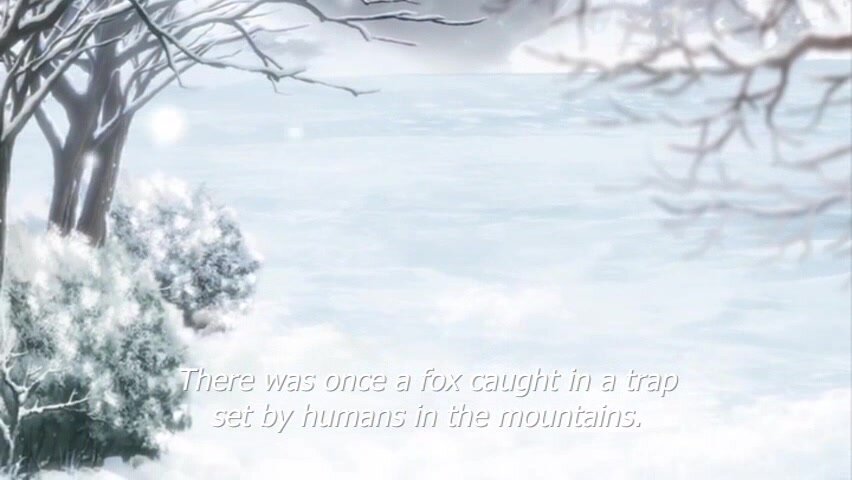 Somewhere in the mountains, a little fox fell into a hunting trap. After lying there for several hours, she was on the verge of life and death. She was saved by an unknown man (the owner of a mountain hotel) who happened to be passing by. A few months passed, the fox's wounds healed and she felt indebted to that person. The fox wanted to repay the man for his kindness and mercy. She took human form and began to search for her savior.